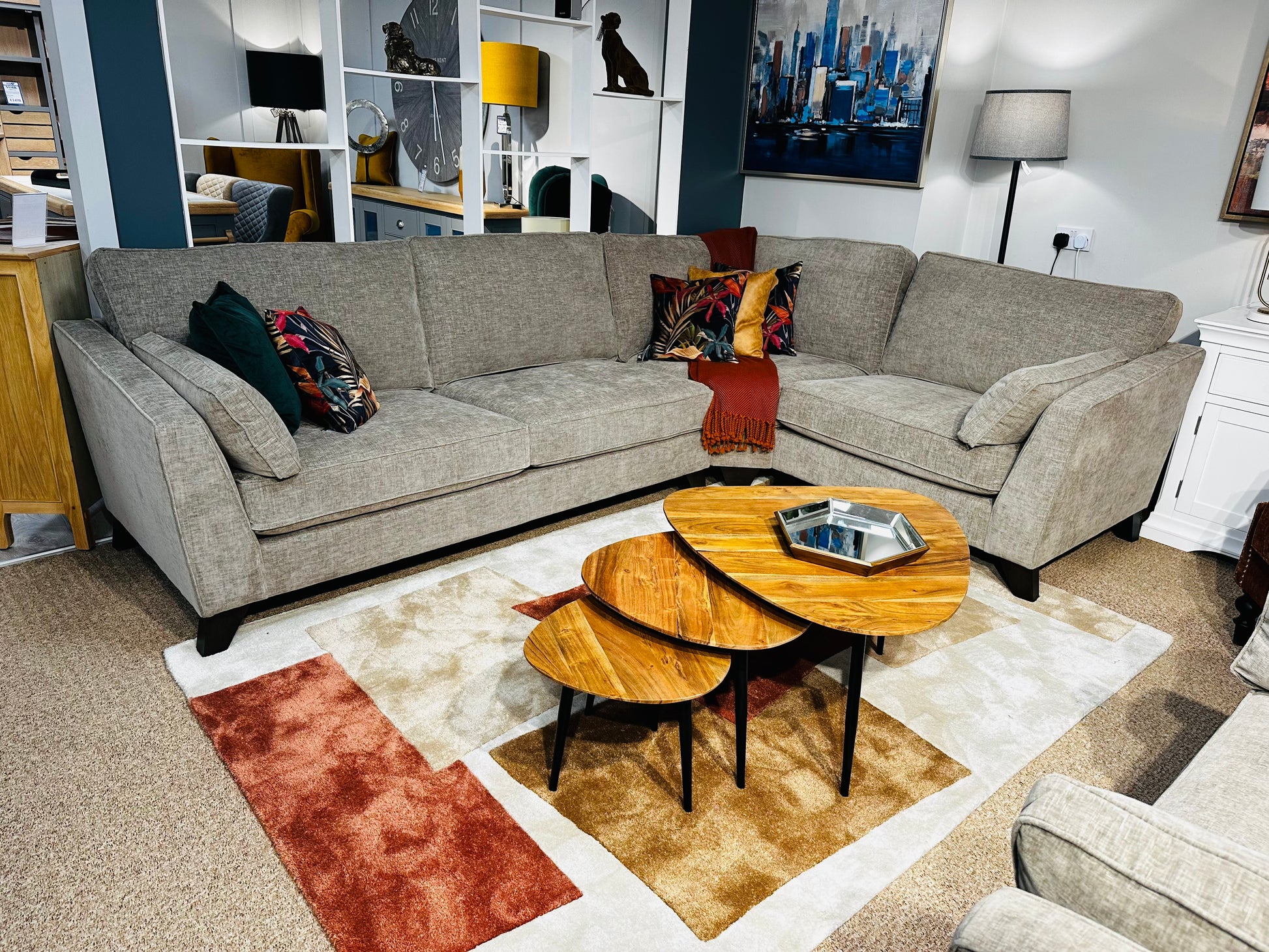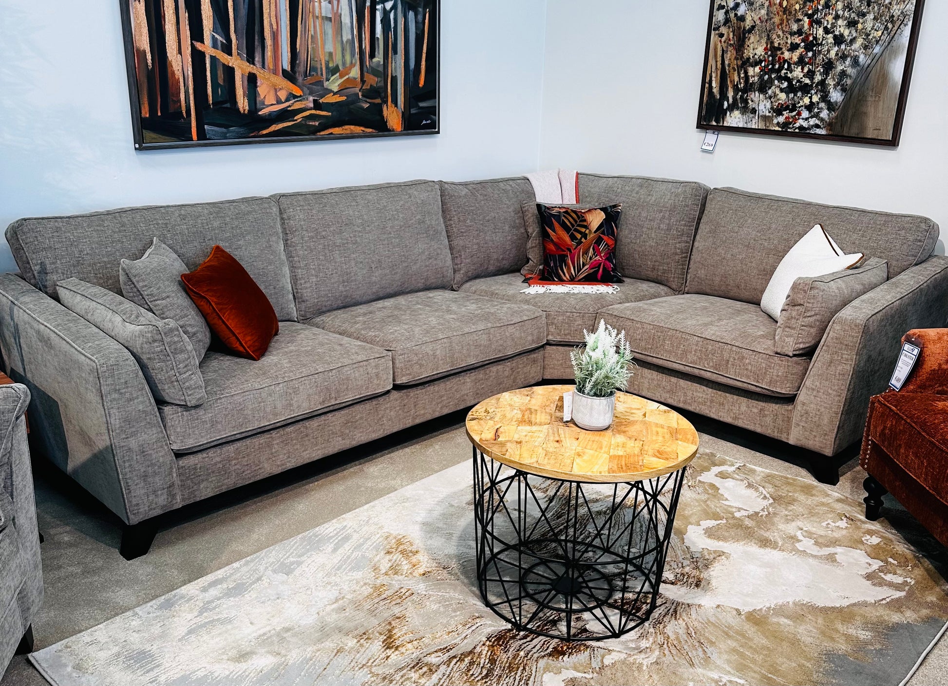 This is a contemporary, transitional, simple design with clean lines Solid wood legs offering a stylish look. Features foam and fibre top seat cushions that are durable and comfortable.