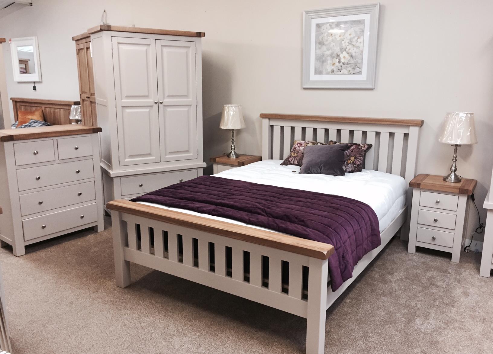 The Bailey Oak Bedroom Collection features a modern twist on a traditional style living range. Featuring Chunky oak tops with Bailey painted colour base. The Bailey range will brighten any Bedroom space.
