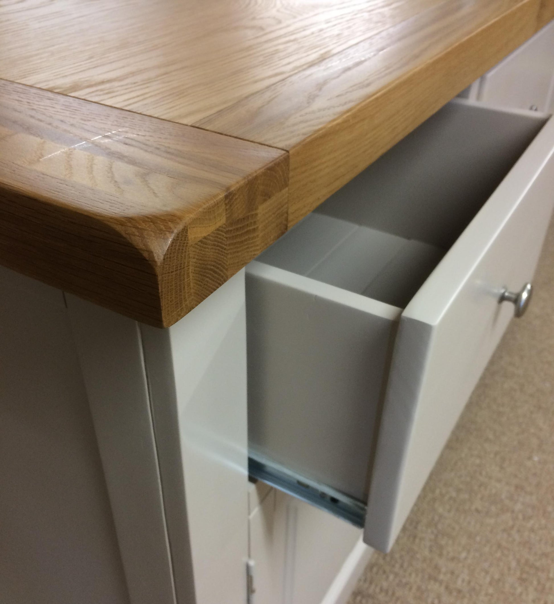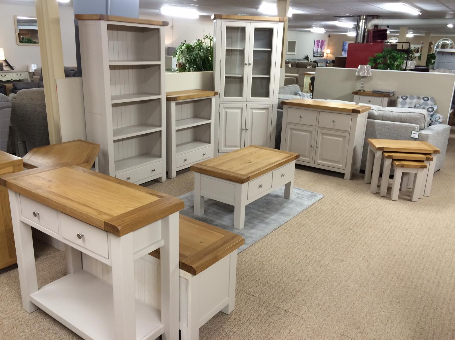 The Bailey Oak Living Dining Collection features a modern twist on a traditional style living range. Featuring Chunky oak tops with Bailey painted colour base. The Bailey range will brighten any living space.
