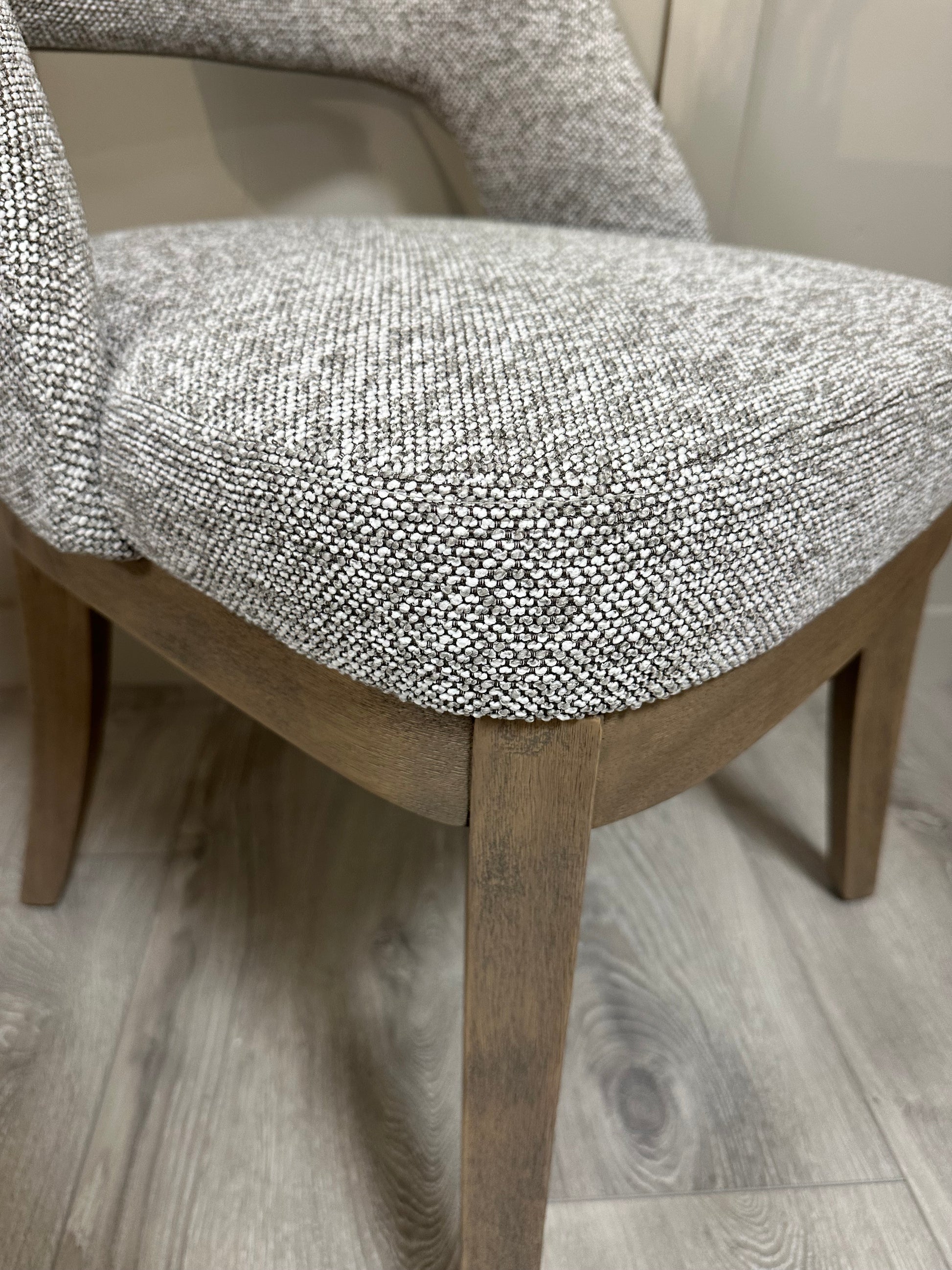 Crafted with a solid wood frame featuring a grey wash finish that enhances the natural wood grain, this chair exudes contemporary charm.