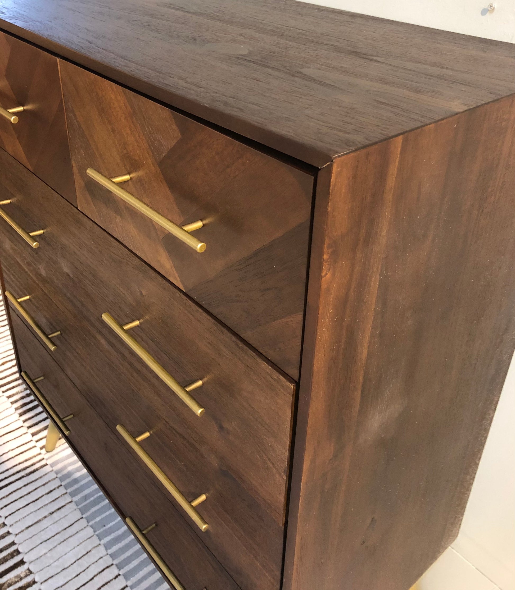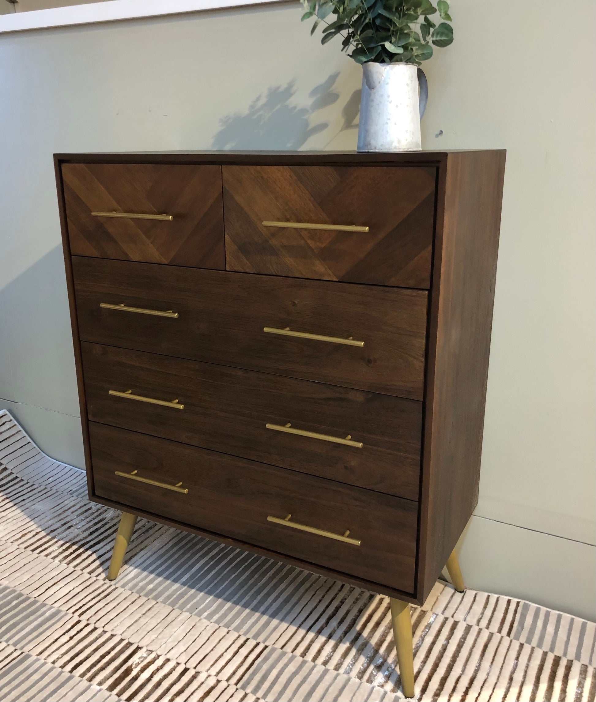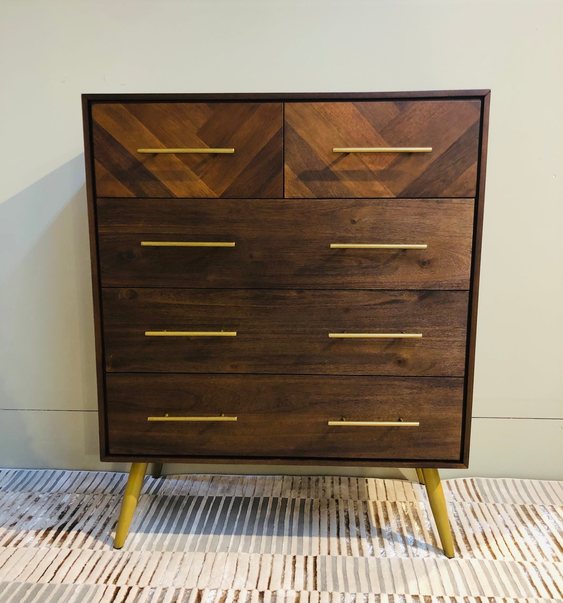 The Bergan Bedroom collection is made from Accica wood in a Parker style finish that is sure to add a stylish and relaxing atmosphere to any space. The brass colour retro legs give the Bergan bedframe a touch of class,