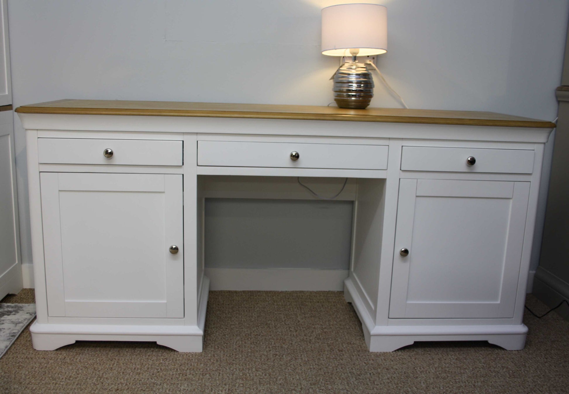 The Brighton large desk table, features 2 drawers & 2 doors with ample interior shelving which provides ample space for storing and organizing your files, papers, documents and other private belongings. The desk come fully set up ( Not Flatpack)