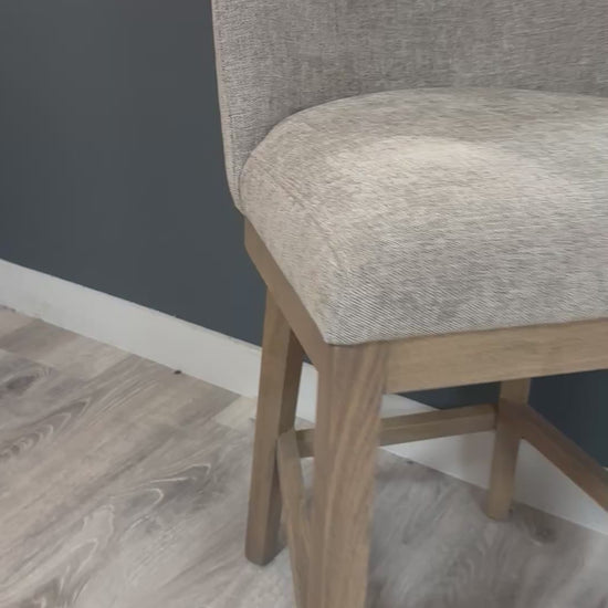 Upholstered in a netural fabric with a curved back for extra comfort.