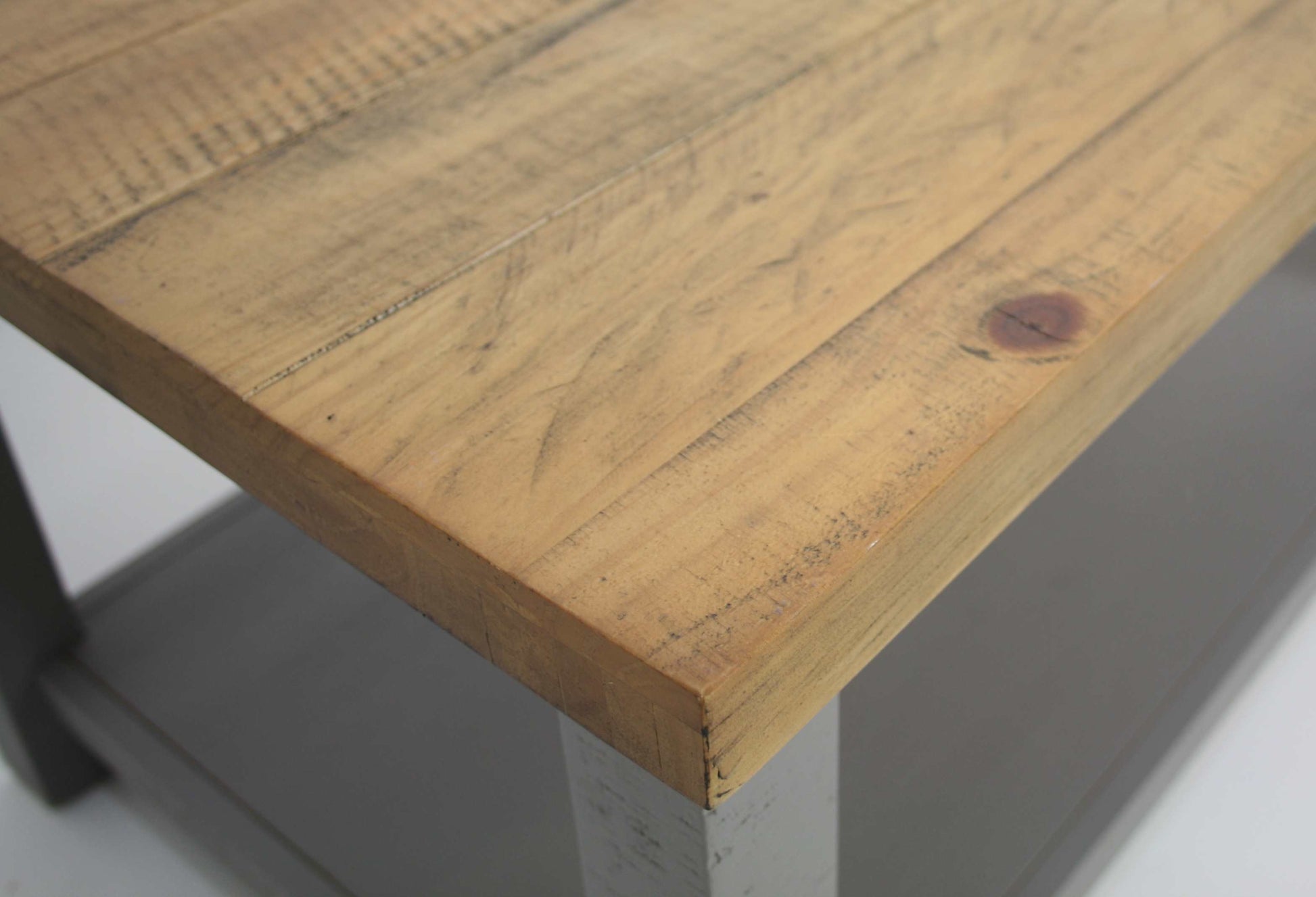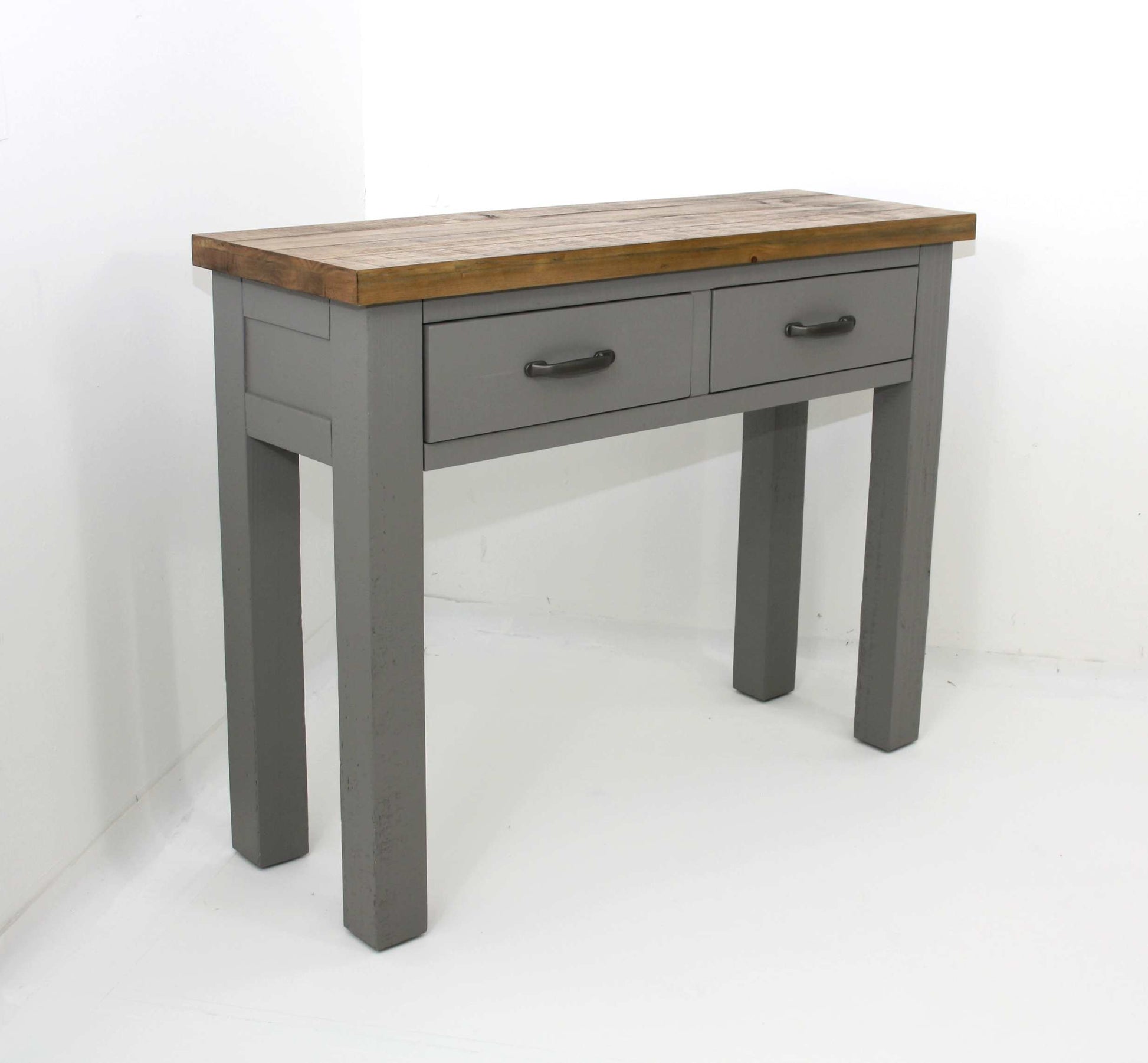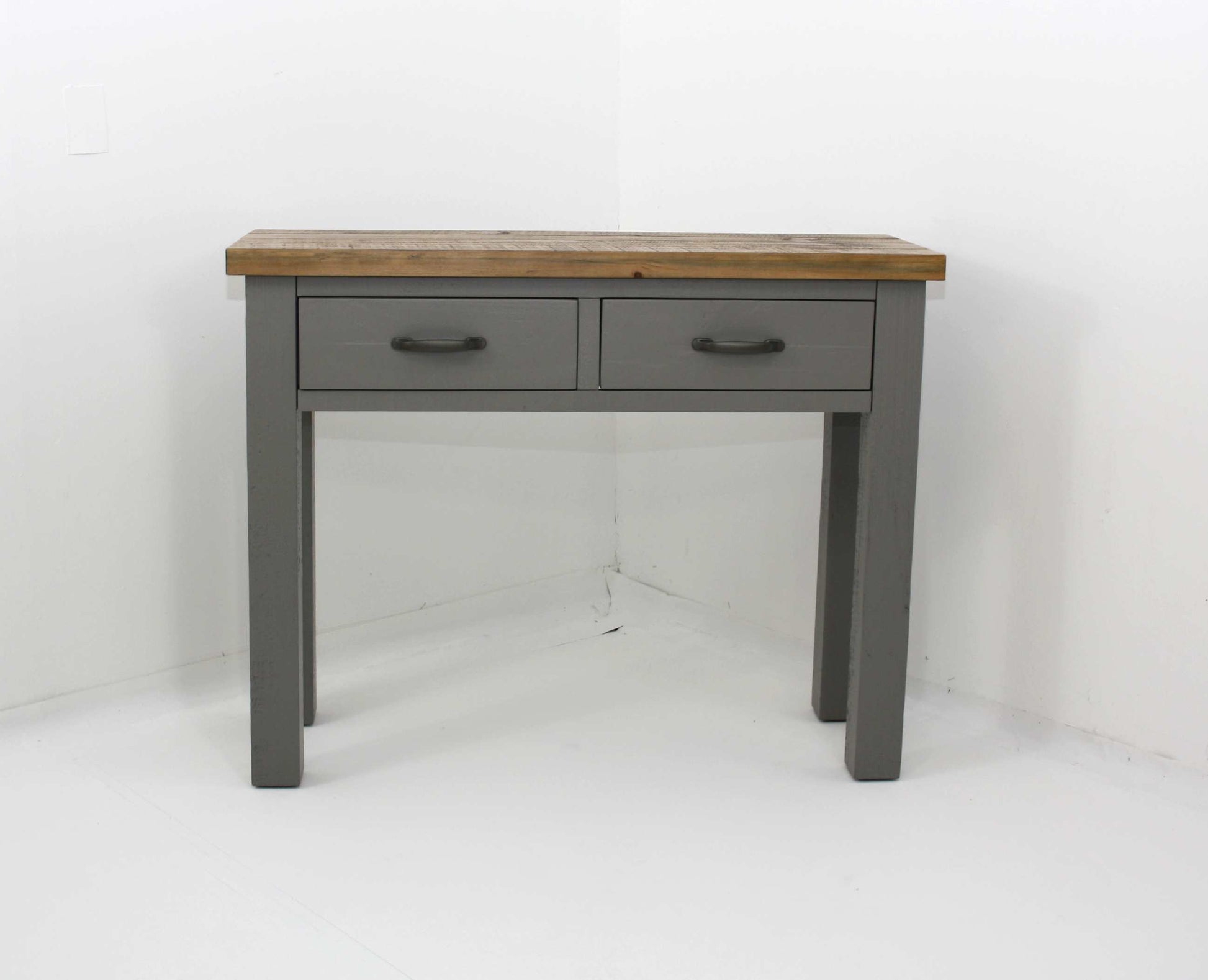 The Deanland Collection is made from individual planks that have been lightly painted in a warm grey with a natural pine top, this piece is guaranteed to fit into many interior decor schemes and can be accessorized to create the desired look. The cast metal handles finish this piece beautifully and create a timeless look.