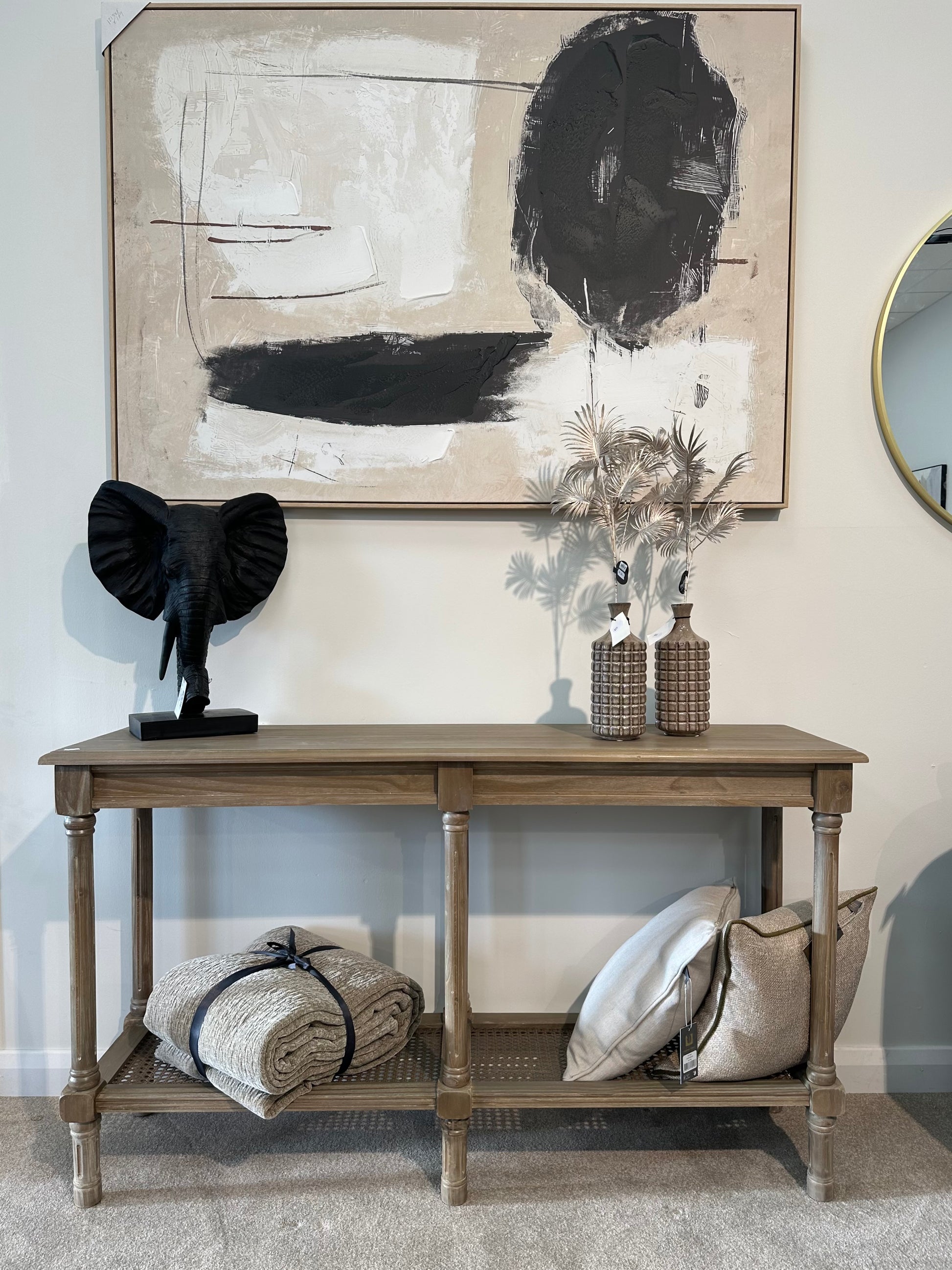 The Colorado console combines a beautiful blend of natural wood grain, highlighting the unique variations in the wood. The subtle grey wash adds a stylish touch,