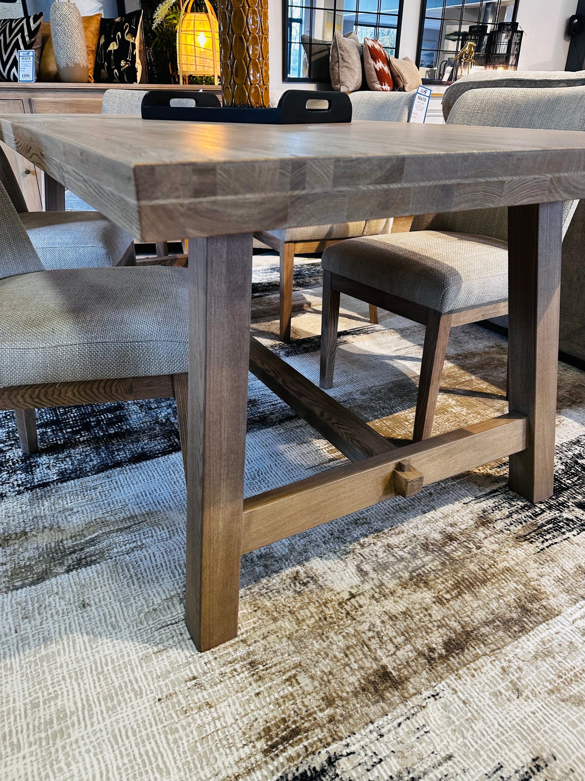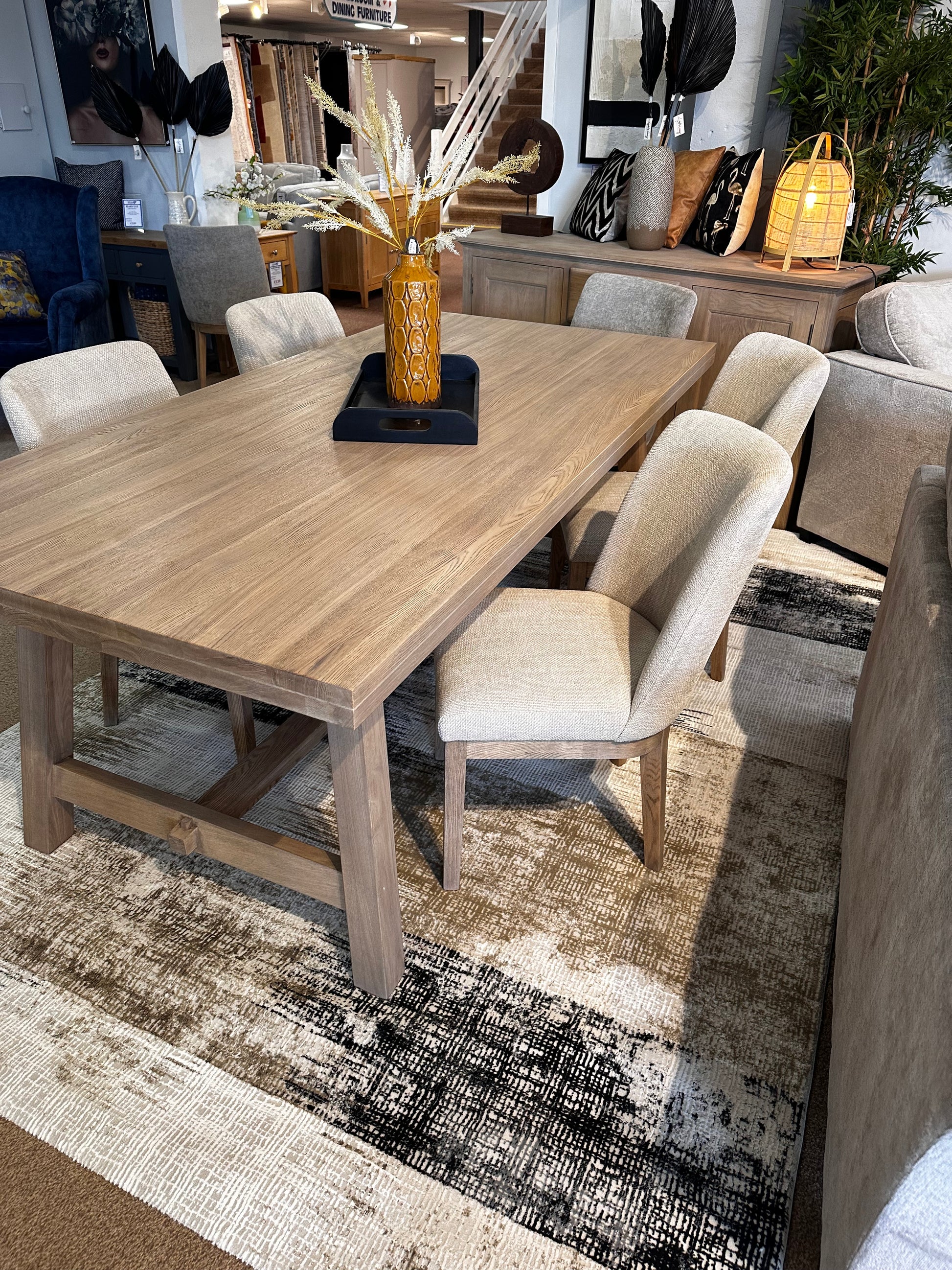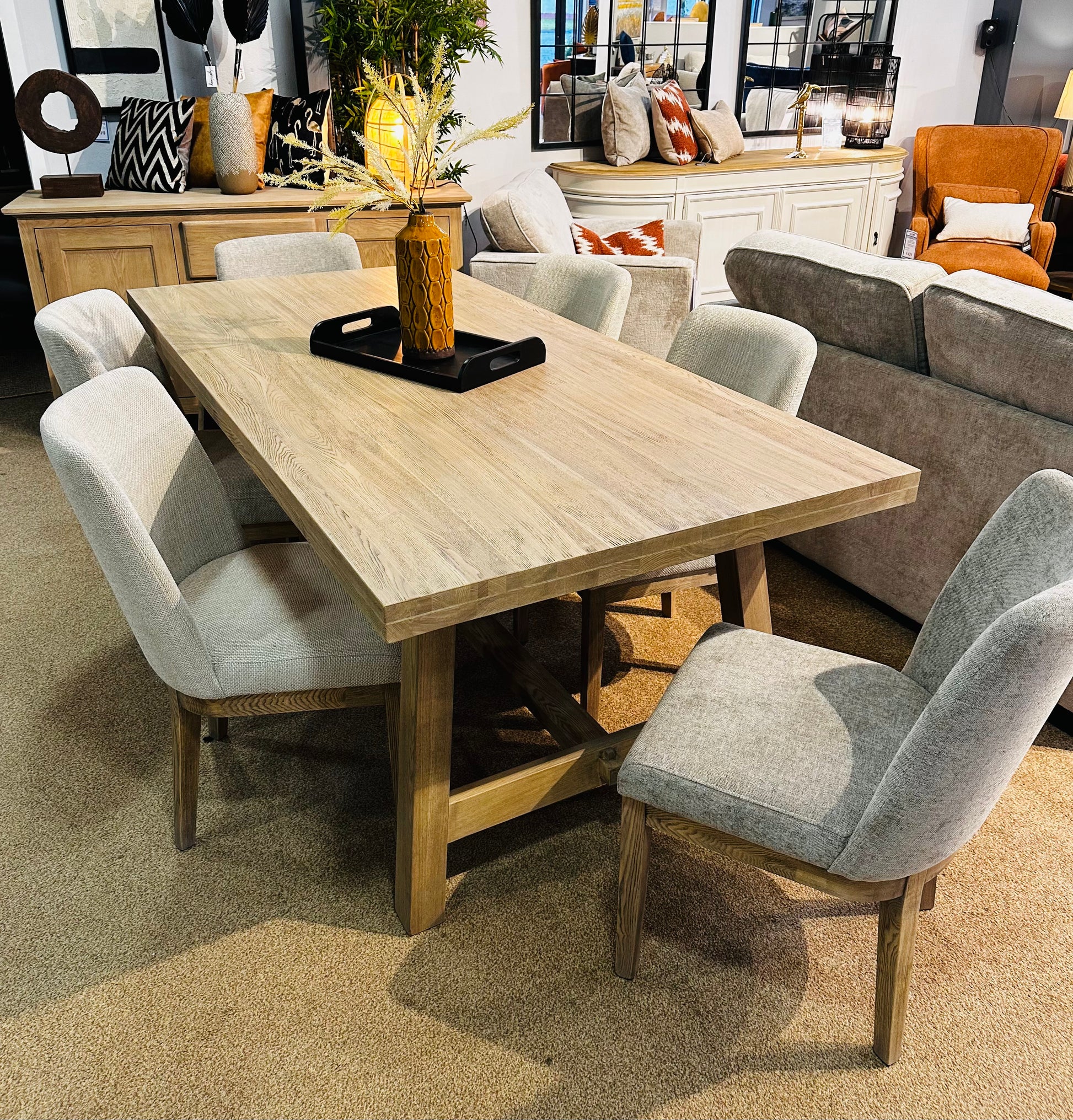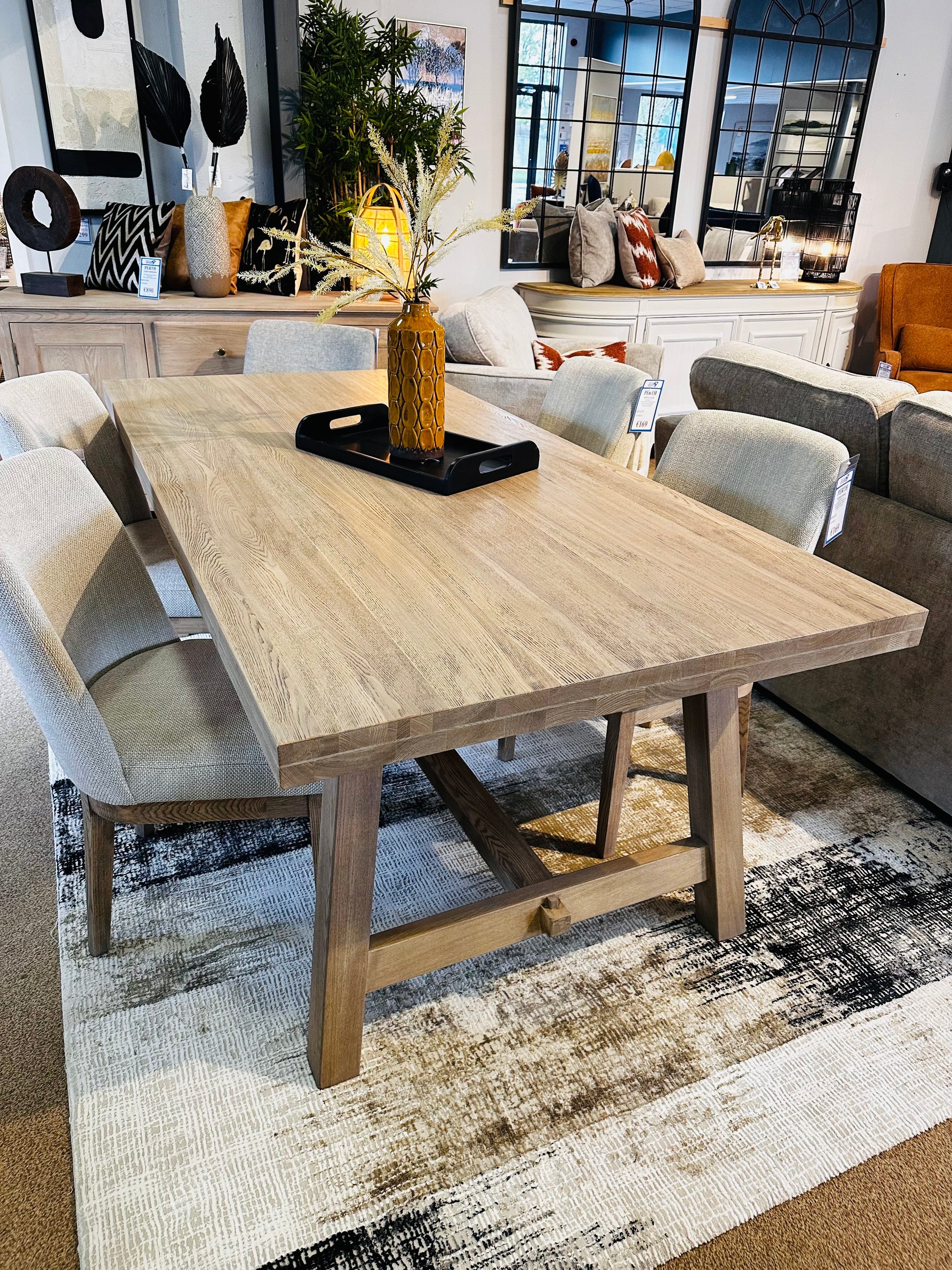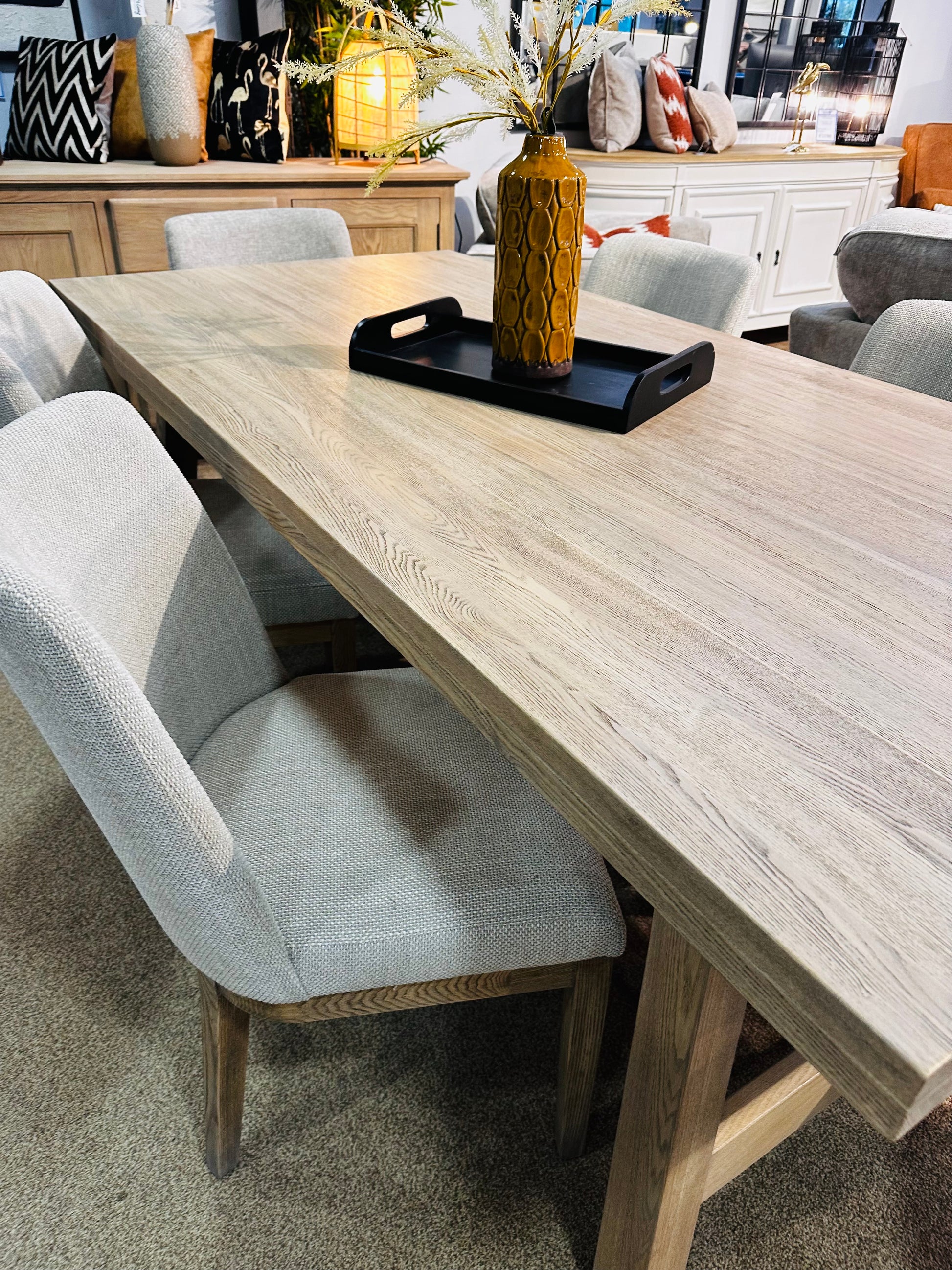 The Perth Dining Collection combines a beautiful blend of natural oak grain, highlighting the unique variations in the wood. The table's subtle grey wash adds a stylish touch, making it an ideal choice for family dining.