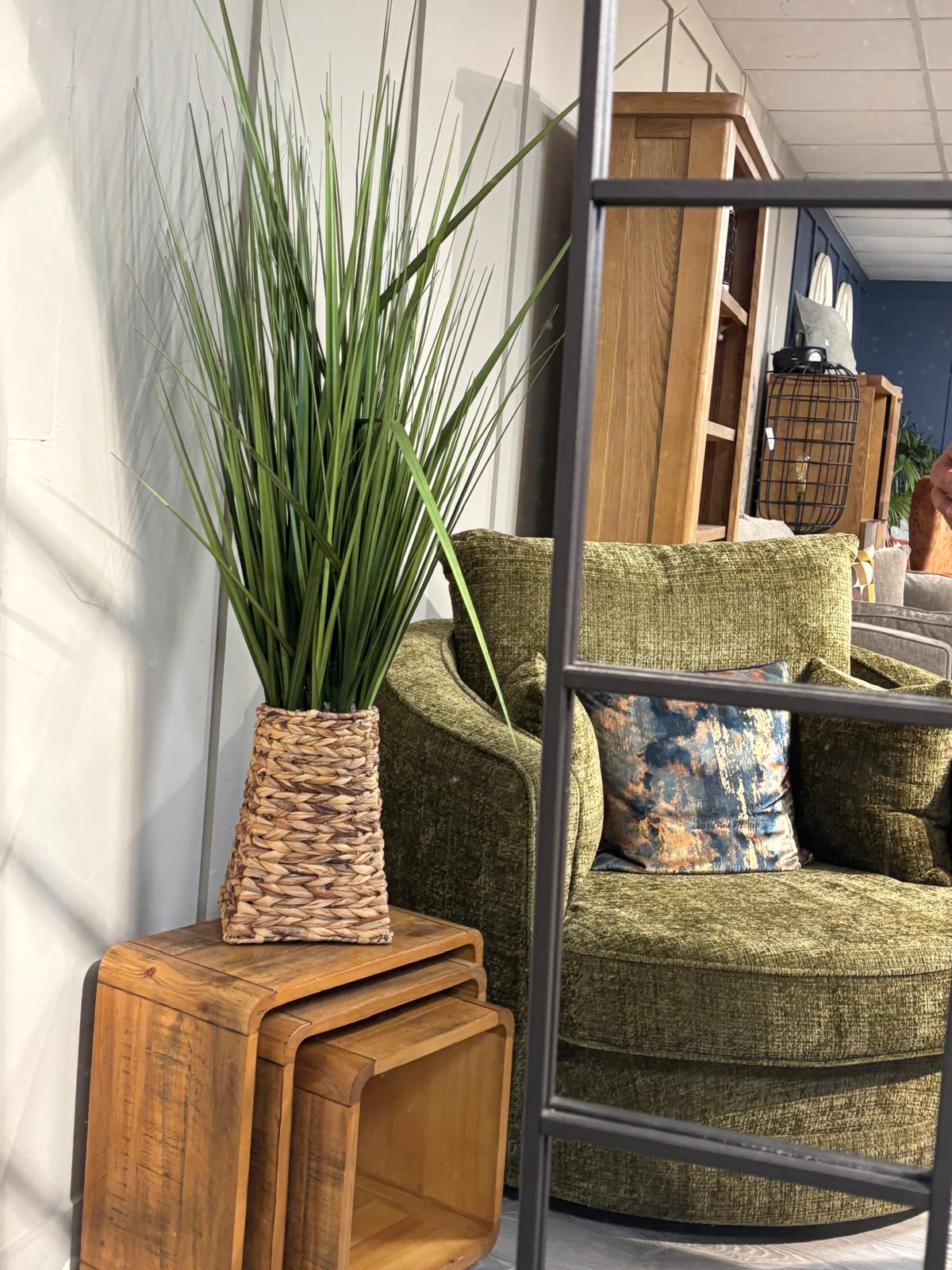 The Willow snuggle chair is both attractive and comfortable. This luxuriously plush olive fabric.